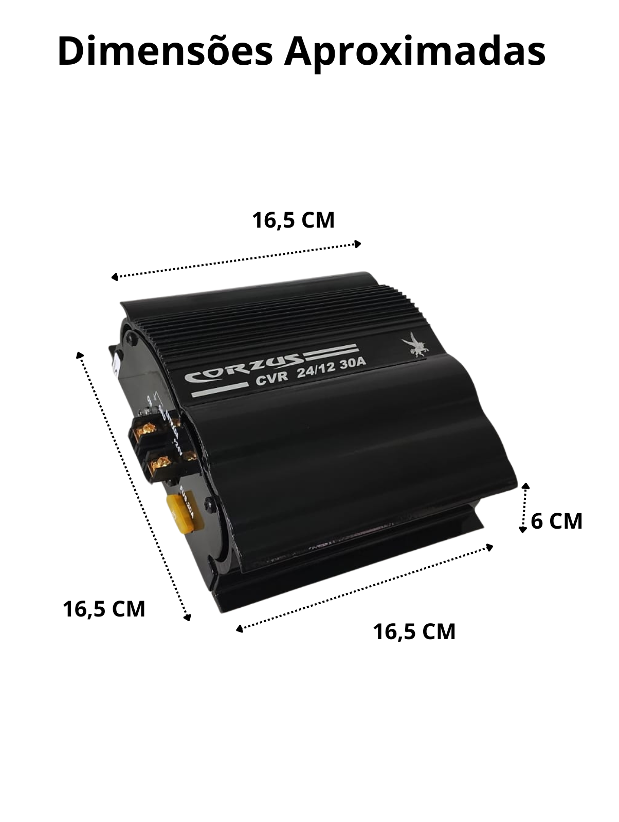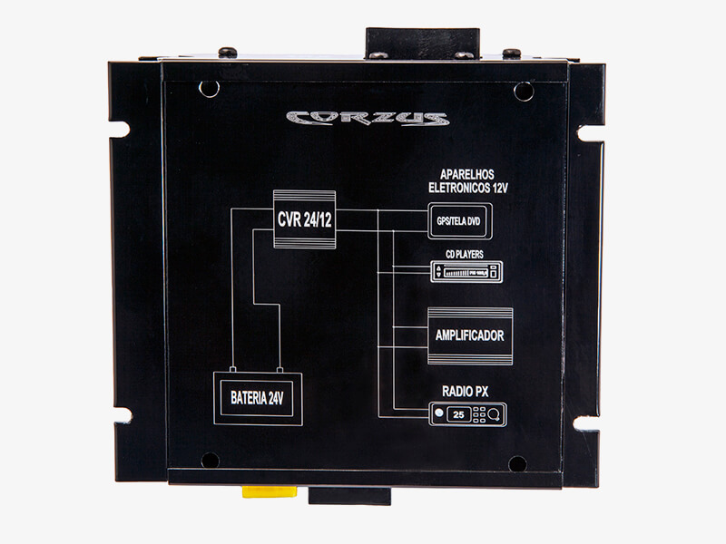 O CVR 24/12 30A é utilizado para a conversão de tensão de 24Volts para 12Volts, indicado principalmente para ônibus, micro ônibus, caminhões e qualquer outro veículo que trabalhe com tensão em 24Volts e necessitem de 12V para instalar seus equipamentos como auto rádios, multimídias, PX, amplificador de baixa potência com consumo de até 30 amperes.
