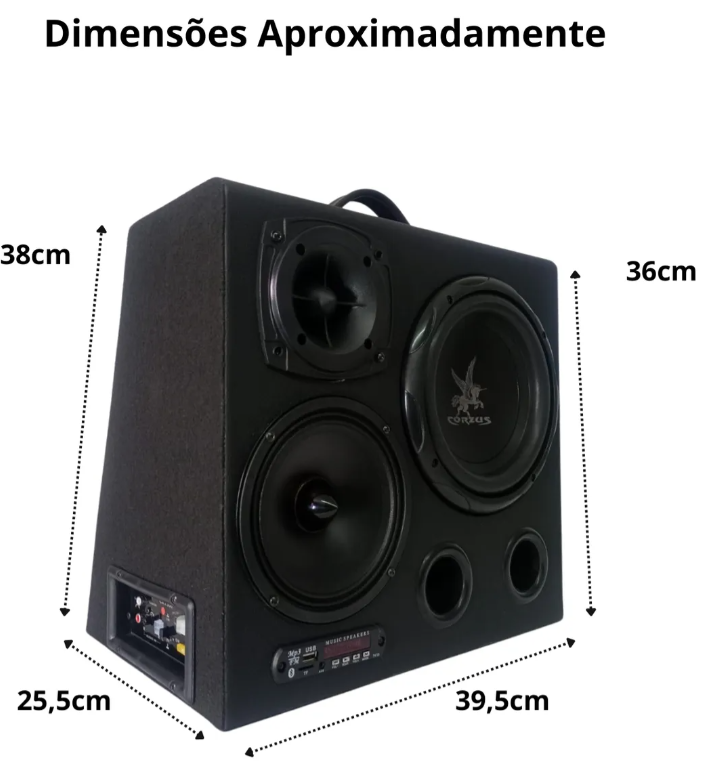 A CORZUS CXHC 600 8″ é uma caixa amplificada com conceito inovador de dupla função. Podendo ser utilizada em casa como caixa de som portátil 110/220V ou em carros como caixa de subgrave e caixa trio em 12V, entrada de áudio via RCA (alta impedância) e via fio (baixa impedância), sistema de reprodução de áudio integrado com Bluetooth, USB (pen drive), SD card e auxiliar P2.