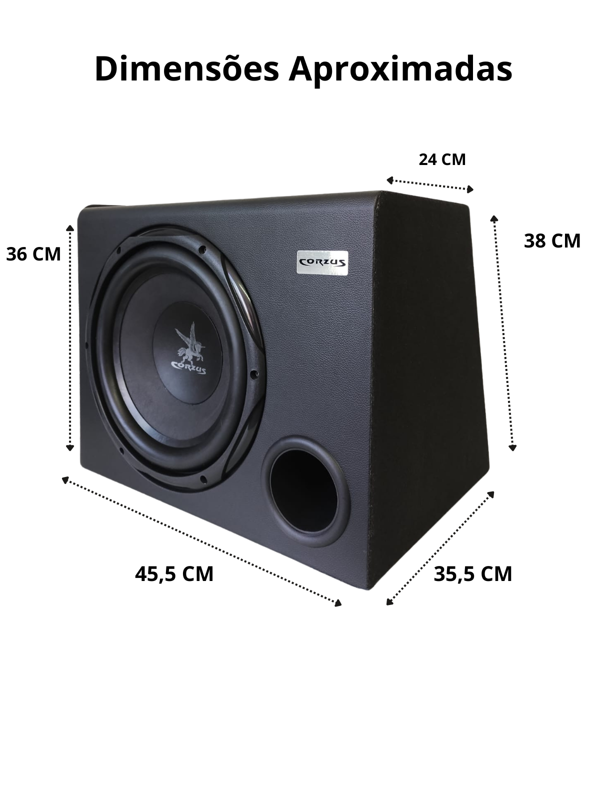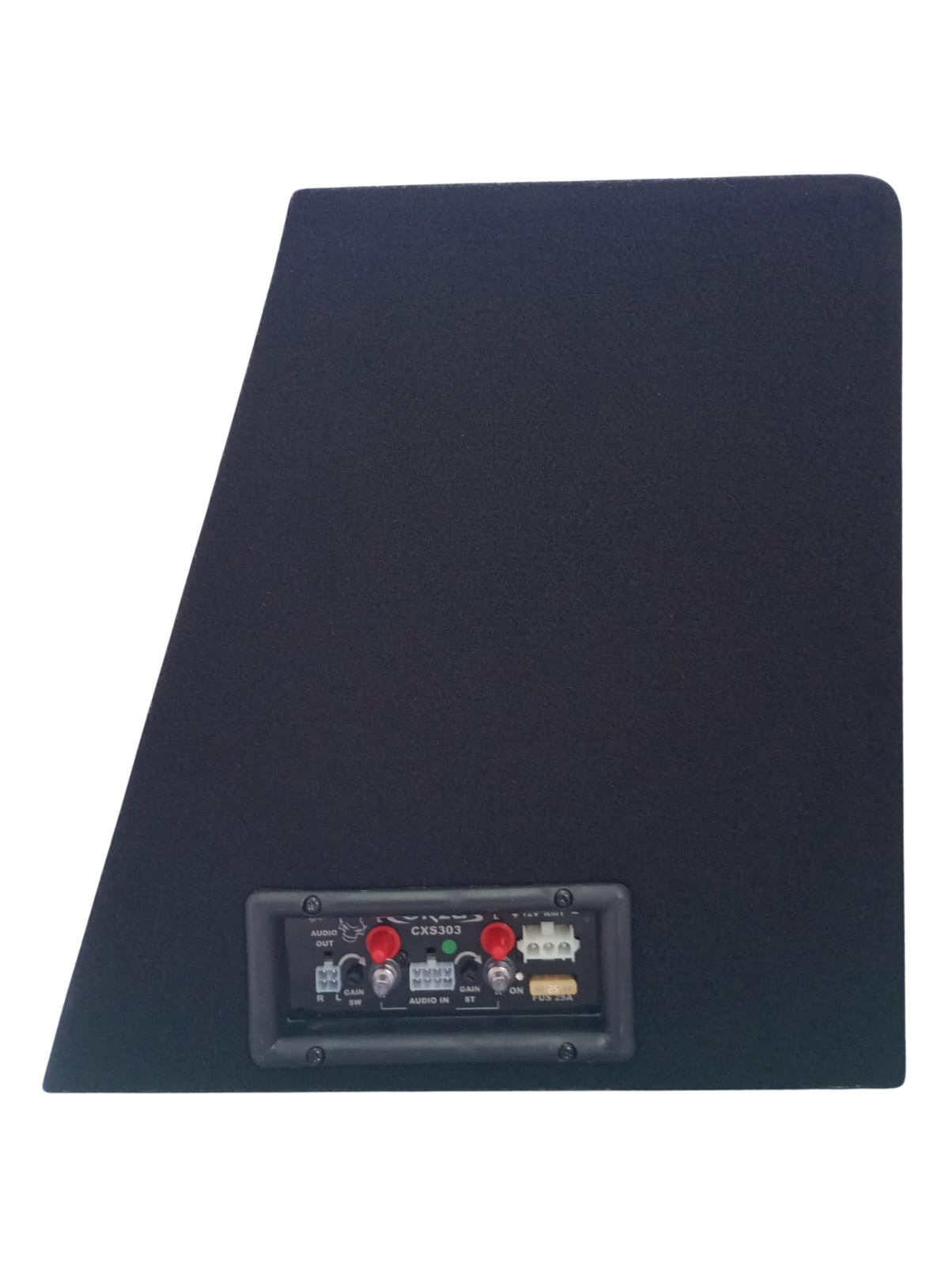 A CORZUS CXS 303 12″ Universal é uma caixa amplificada para subgrave com saída de áudio stereo e potência total de 350 Watts RMS com amplificador digital de altíssima eficiência e baixa emissão de ruído, possui extrema qualidade de áudio, resposta senoidal de 20Hz a 100Hz Sub de 20Hz a 20KHz.