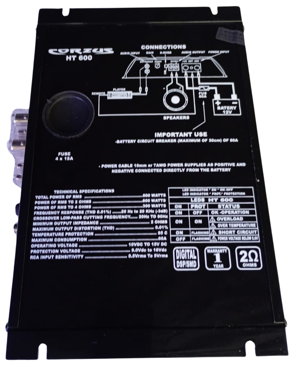 Linha HT de amplificadores CORZUS foi desenvolvida para atender todos os tipos de sistema de som automotivo, interno ou externo. Produzido com alta tecnologia atende desde woofers e sub woofers, alto-falantes, drive, entradas de áudio RCA e crossover HI/PASS/LOW.
