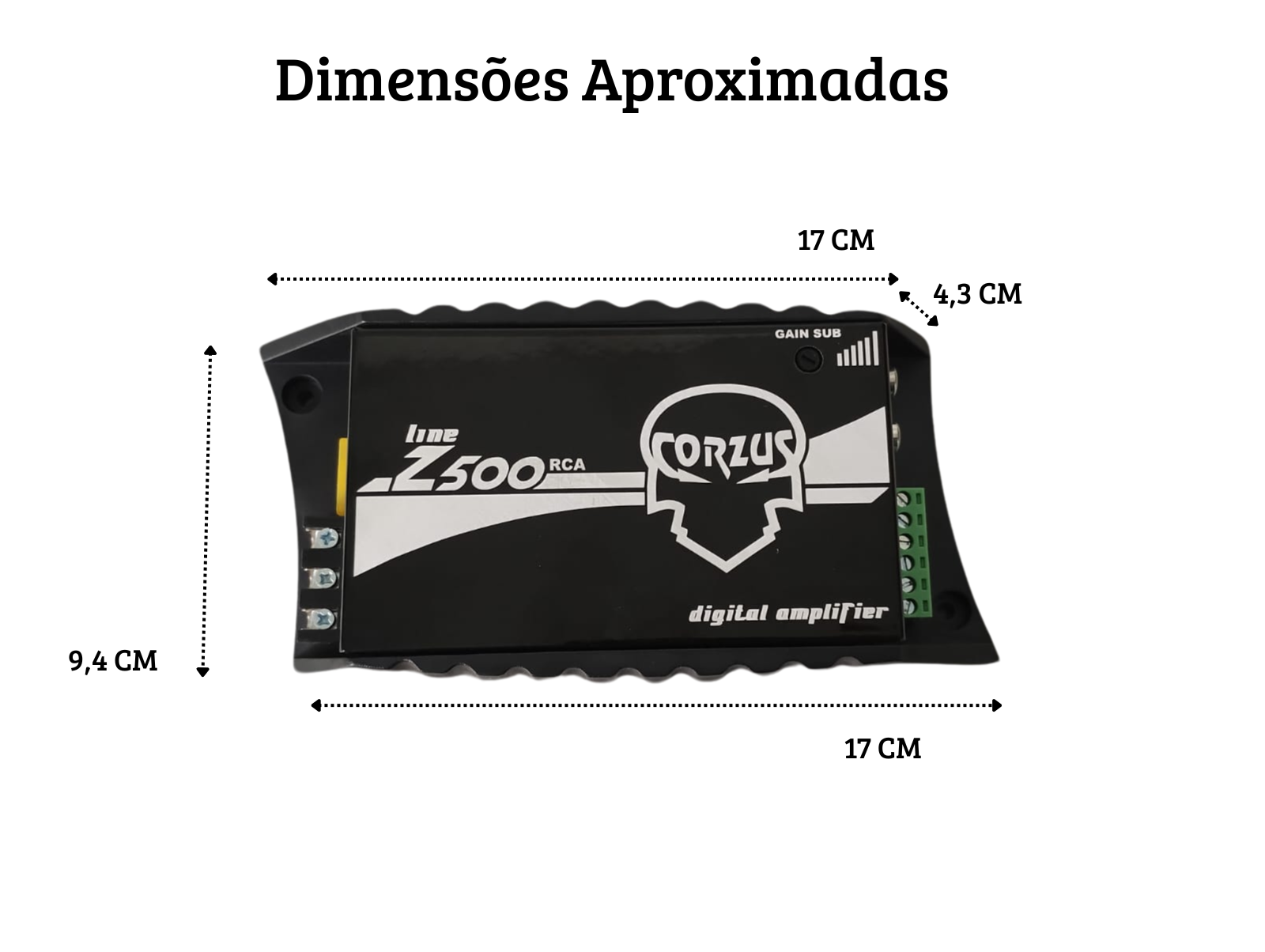 | Potência: | 3 Canais – 500 Watts |
